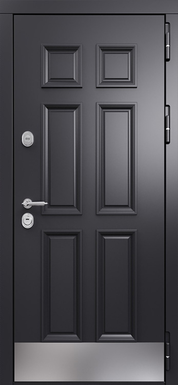 Входная дверь с МДФ №566 создана для тех, кто ценит прочность металла и уютный внешний вид в одном решении. Она одинаково хорошо вписывается в частный дом, квартиру или офис, подчеркивая солидность пространства и обеспечивая надежную защиту. Каркас и полотно собраны из профильных труб, усиленных ребрами жесткости, а стальной лист толщиной 2 мм гарантирует устойчивость к взлому и длительный срок службы. С обеих сторон дверь облицована МДФ панелями с ПВХ-покрытием, что делает поверхность более устойчивой к истиранию и мелким повреждениям, сохраняя привлекательность даже при интенсивной эксплуатации. Панели легко очищаются и не выгорают на солнце, благодаря чему дверь подходит и для уличной установки. Два контура уплотнения надежно защищают от сквозняков и посторонних запахов, а при необходимости можно дополнительно усилить конструкцию тепло- и шумоизоляцией. Модель №566 сочетает в себе сдержанный дизайн и функциональность, делая ее практичным выбором для самых разных помещений. Входная дверь с МДФ №566 от производителя: быстрое изготовление и монтаж в Нахабино, индивидуальные размеры, широкий выбор материалов и фурнитуры, официальная гарантия до 10 лет.