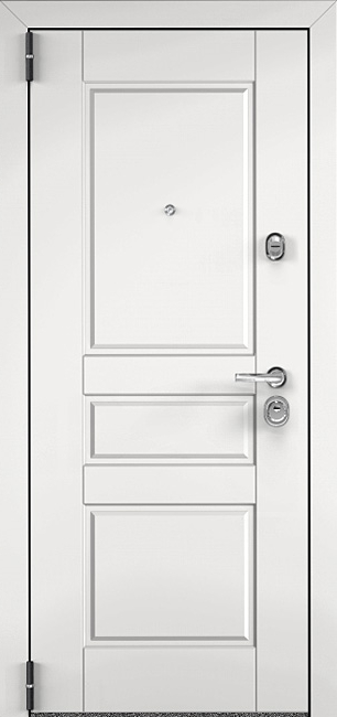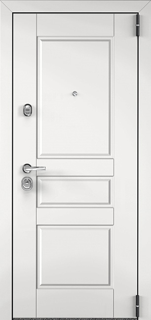 Белая металлическая дверь входная для дома №33 выделяется своим свежим и современным обликом. Универсальный белый цвет делает её уместной как в частном коттедже, так и в квартире или офисе, визуально добавляя простора и подчеркивая аккуратность фасада или интерьера. Конструкция двери основана на стальном листе толщиной 2 мм и усилена профильными трубами, что гарантирует надежность и устойчивость к нагрузкам. Важная особенность модели — наличие терморазрыва в полотне и коробке: благодаря этому дверь не промерзает в зимний период, исключается конденсат и сохраняется комфорт внутри помещения. Внешняя и внутренняя отделка выполнена из МДФ с ПВХ-покрытием, которое защищает поверхность от влаги и механических повреждений, сохраняя первозданный вид надолго. Два контура уплотнителя обеспечивают герметичность и дополнительную защиту от сквозняков. Эта дверь удачно сочетает эстетику и практичность, создавая надежный вход в любое жилище. Белая металлическая дверь входная для дома №33 от производителя: быстрое изготовление и монтаж в Нахабино, индивидуальные размеры, широкий выбор материалов и фурнитуры, официальная гарантия до 10 лет.