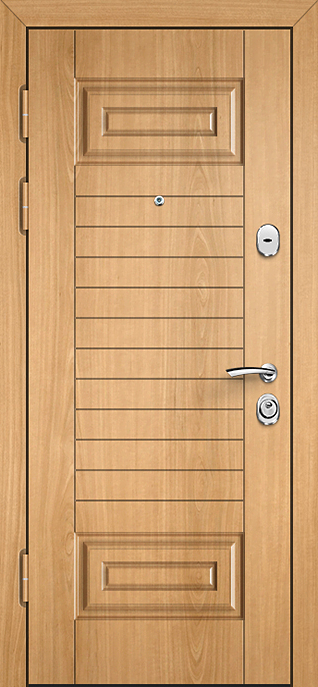 Металлическая конструкция с листом стали толщиной 2 мм и жёстким каркасом из профильной трубы формирует основу, которая не подведёт ни в квартире, ни в офисе. Два контура резинового уплотнителя делают закрывание плотным, уменьшая шум и сквозняки, а наличие блокираторов повышает уровень безопасности. Внешняя и внутренняя отделка выполнена из МДФ ПВХ — материал прочный, устойчивый к мелким повреждениям и сохраняющий аккуратный вид при ежедневной эксплуатации. В центре внимания здесь Железная дверь в квартиру №78, сочетающая надёжность стали и декоративные возможности панелей, которые можно комбинировать по вкусу. Комплект замков представлен сувальдным Просам и цилиндровым Мосрентген, при этом доступна замена на более сложные механизмы вплоть до биометрических систем. Конструкцию легко дополнить зеркалом, стеклопакетом, коваными элементами или видеодомофоном, превратив строгую дверь в удобный и технологичный элемент современного жилья. Железная дверь в квартиру №78 от производителя: быстрое изготовление и монтаж в Нахабино, индивидуальные размеры, широкий выбор материалов и фурнитуры, официальная гарантия до 10 лет.