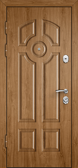 Филёнчатая отделка всегда придаёт дверному полотну особый шарм, создавая эффект глубины и аккуратного рельефа. Входная дверь МДФ с внешней панелью под филёнку №537 универсальна и одинаково хорошо смотрится на фасаде частного дома, в офисе или в квартире. Отделка из МДФ-плиты устойчива к мелким повреждениям, не выгорает и сохраняет аккуратный вид при ежедневной эксплуатации, а при необходимости легко комбинируется с другими декоративными элементами. В основе конструкции — каркас из профильной трубы, лист стали толщиной 2 мм и рёбра жёсткости, обеспечивающие надёжность и жёсткость всей системы. Для удобства и безопасности предусмотрены два замка: сувальдный Просам и цилиндровый Мосрентген. Два контура уплотнения повышают комфорт эксплуатации, а при желании дверь можно дополнить зеркалом, стеклопакетом или коваными вставками, сделав её не только прочной, но и выразительной частью интерьера. Входная дверь МДФ и внешней панелью под филенку №537 от производителя: быстрое изготовление и монтаж в Нахабино, индивидуальные размеры, широкий выбор материалов и фурнитуры, официальная гарантия до 10 лет.