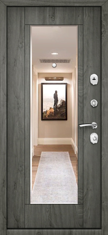 Эта модель создана для тех, кто ценит надежность металла и продуманную эстетику. Снаружи дверь защищена порошковой окраской, стойкой к атмосферным воздействиям и царапинам, что делает её долговечной даже при установке на улицу. Внутри используется МДФ с пленкой ПВХ, благодаря чему полотно выглядит аккуратно и легко вписывается в интерьер квартиры или офиса. Особое внимание заслуживает железная дверь с зеркалом №70: встроенное зеркало делает пространство прихожей визуально шире и добавляет практичности в повседневное использование. Конструкция выполнена из профильных труб и стали толщиной 2 мм, усиленных ребрами жесткости. Два контура уплотнителей надежно защищают от сквозняков, а терморазрыв в коробке и полотне предотвращает промерзание зимой. Дверь комплектуется замками российского производства с ригельной системой, при желании можно установить замки премиальных марок или смарт-модели, а также дополнить изделие видеодомофоном или декоративными элементами. Железная дверь с зеркалом №70 от производителя: быстрое изготовление и монтаж в Нахабино, индивидуальные размеры, широкий выбор материалов и фурнитуры, официальная гарантия до 10 лет.