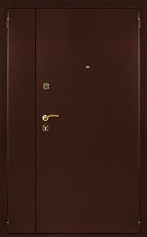 Двухстворчатая металлическая тамбурная дверь эконом №1 сочетает в себе простоту и надежность, что делает её отличным выбором для установки в местах с высокой проходимостью. Внешняя порошковая окраска обеспечивает стойкость к механическим повреждениям, а внутренняя отделка из ламинированных панелей придает двери элегантный вид, сохраняя при этом долговечность и устойчивость к внешним воздействиям. Каркас и полотно выполнены из профильной трубы 50х25 мм, что гарантирует прочность конструкции. Толщина металла 2 мм и наличие ребер жесткости добавляют дополнительную жесткость и защиту. Дверь оснащена замками "Просам" и "Мосрентген", каждый из которых имеет по три ригеля для надежного запирания. Резиновое уплотнение с двумя контурами надежно защищает от попадания влаги и пыли. Возможность комбинировать отделки и добавить зеркало, стеклопакет или кованые элементы позволяет сделать дверь не только функциональной, но и стильной. Тамбурная металлическая двухстворчатая дверь эконом №1 от производителя: быстрое изготовление и монтаж в Нахабино, индивидуальные размеры, широкий выбор материалов и фурнитуры, официальная гарантия до 10 лет.