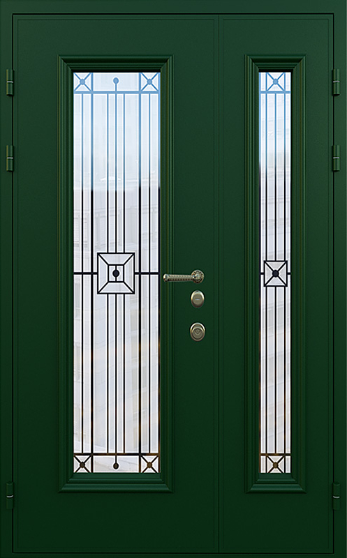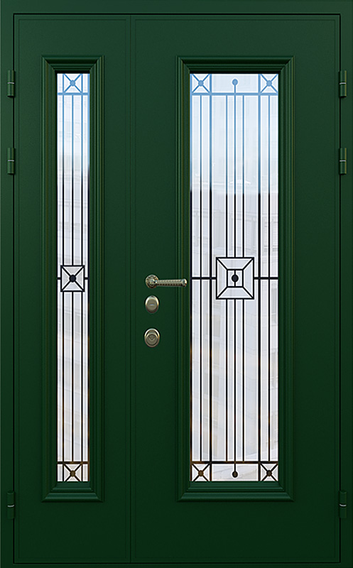Зеленая полуторная дверь со стеклопакетом для частного дома №18 — это идеальный выбор для тех, кто хочет добавить в свой дом надежность и стиль. Элементы декора, такие как багет и ковка, придают двери элегантный вид, который идеально гармонирует с фасадом загородного дома. Панели МДФ с ПВХ-покрытием, использованные для внешней и внутренней отделки, обеспечивают высокую стойкость к механическим повреждениям и внешним воздействиям, сохраняя прекрасный внешний вид на долгое время. Зеленая полуторная дверь со стеклопакетом для частного дома №18 от производителя: быстрое изготовление и монтаж в Нахабино, индивидуальные размеры, широкий выбор материалов и фурнитуры, официальная гарантия до 10 лет.
