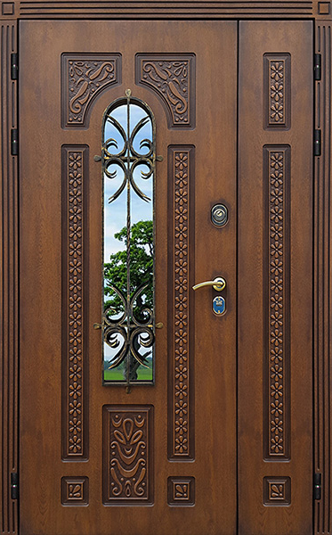 Двойная входная дверь с большим стеклом и ковкой для дома №25 сочетает в себе стиль и надежность, предлагая великолепное решение для вашего дома. Внешняя и внутренняя отделка выполнены из панелей МДФ с ПВХ, что придает двери долговечность и устойчивость к механическим повреждениям, а также способствует легкости ухода. Стеклопакет в комбинации с изысканным кованым узором создаёт не только эстетическое наслаждение, но и позволяет улучшить светопроникновение в помещении. Двойная входная дверь с большим стеклом и ковкой для дома №25 от производителя: быстрое изготовление и монтаж в Нахабино, индивидуальные размеры, широкий выбор материалов и фурнитуры, официальная гарантия до 10 лет.
