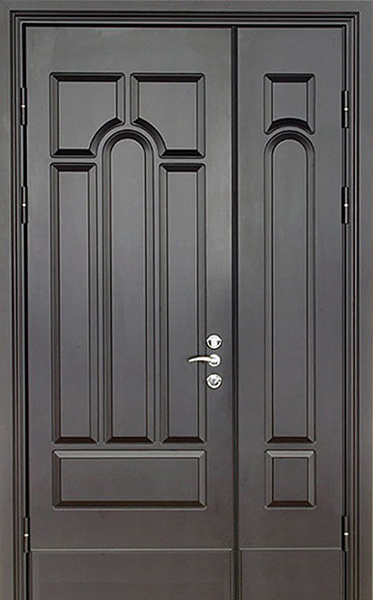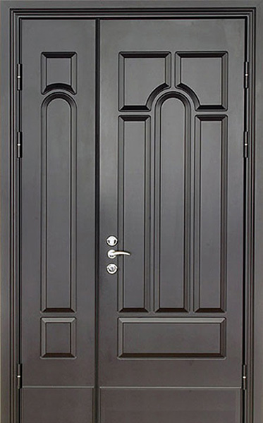 Металлическая двухстворчатая дверь для дома цвета графит №27 – это стильное и надежное решение для вашего жилья. Внешняя и внутренняя отделка выполнены из МДФ, что придает двери изысканный вид и увеличивает её стойкость к механическим повреждениям. Цвет графит придаёт двери современный и элегантный оттенок, который легко впишется в интерьер как частных домов, так и современных офисов. Металлическая двухстворчатая дверь для дома цвета графит №27 от производителя: быстрое изготовление и монтаж в Нахабино, индивидуальные размеры, широкий выбор материалов и фурнитуры, официальная гарантия до 10 лет.