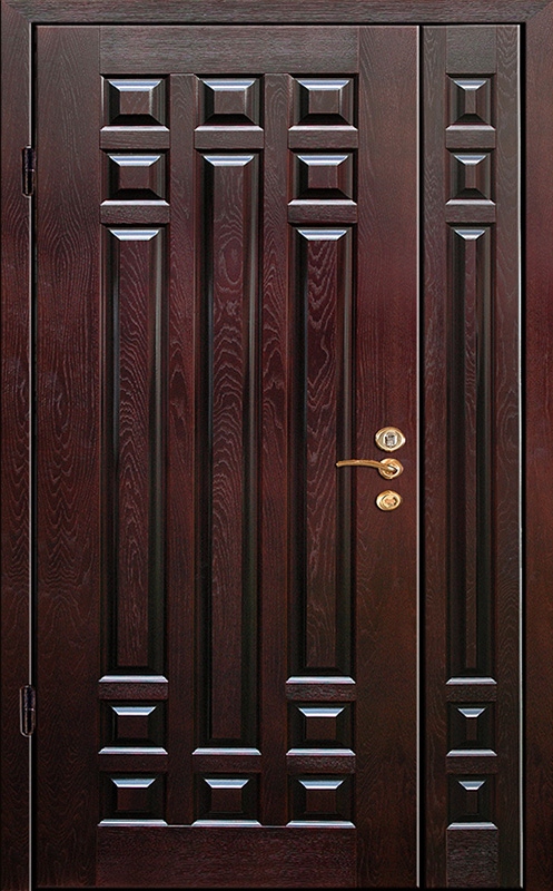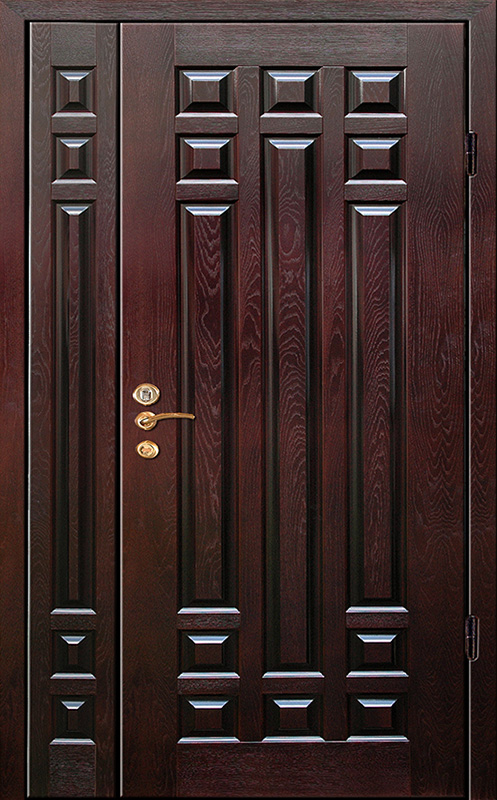 Эта двухстворчатая парадная дверь с объемной фрезеровкой №3 станет отличным акцентом в любом интерьере, добавив элегантности и солидности. Внешняя и внутренняя отделка из натурального дерева придает двери натуральный и стильный вид, который легко впишется как в классические, так и современные дизайны. Прочная конструкция двери с каркасом из профильной трубы 50х25 мм и листом металла толщиной 2 мм гарантирует долговечность и защиту. Ребра жесткости из профильных труб 40х25 мм повышают ее устойчивость к нагрузкам. Замки "Просам" и "Мосрентген" с тремя ригелями обеспечивают надежную защиту. Возможность выбора отделки и установки дополнительных элементов, таких как зеркало, стеклопакет или кованые детали, позволяет сделать дверь уникальной и подходящей под любые требования. Терморазрыв полотна и коробки способствует улучшению теплоизоляции. Вдобавок можно оснастить дверь современными замками и видеодомофоном для дополнительного комфорта и безопасности. Парадная двухстворчатая дверь с объемной фрезеровкой №3 от производителя: быстрое изготовление и монтаж в Нахабино, индивидуальные размеры, широкий выбор материалов и фурнитуры, официальная гарантия до 10 лет.