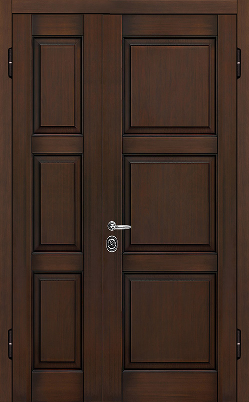 Двойная филенчатая дверь для загородного дома венге №7 сочетает в себе элегантность и прочность. Ее внешняя отделка выполнена из панелей МДФ с ПВХ, что придает двери современный вид, а также обеспечивает устойчивость к механическим повреждениям и долговечность. Каркас из профильной трубы 50х25 мм и полотно толщиной 2 мм гарантируют надежность и устойчивость к нагрузкам. Ребра жесткости из профильных труб 40х25 мм усиливают конструкцию, а уплотнение с двумя контурами защищает от проникновения влаги и пыли. Замки "Просам" и "Мосрентген" с тремя ригелями обеспечивают высокий уровень безопасности. В дверь можно добавить дополнительные элементы, такие как стеклопакет, зеркало или кованые детали, что позволяет адаптировать ее под любой интерьер. Терморазрывы в коробке и полотне способствуют лучшей теплоизоляции, обеспечивая комфорт в любое время года. Двойная филенчатая дверь для загородного дома венге №7 от производителя: быстрое изготовление и монтаж в Нахабино, индивидуальные размеры, широкий выбор материалов и фурнитуры, официальная гарантия до 10 лет.