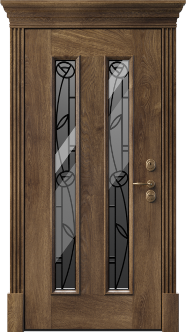 Надежность и эстетика в одной конструкции — именно так можно описать входную дверь с ковкой и стеклом №12. Она рассчитана на установку в частных домах и коттеджах, где важно подчеркнуть не только защиту, но и выразительный облик фасада. Основа выполнена из стали толщиной 2 мм с усилением профильными трубами и ребрами жесткости, что гарантирует прочность и долговечность. Два контура уплотнителя создают плотное прилегание, снижая уровень уличного шума и препятствуя проникновению влаги. Наружная и внутренняя отделка выполнена плитами МДФ, материал устойчив к царапинам и перепадам температуры, сохраняя аккуратный вид долгие годы. Особую роль играют стеклянные вставки и изящные кованые элементы, превращающие дверь в декоративный акцент парадного входа. За безопасность отвечают замки Kale Kilit с разными системами запирания, которые при желании можно заменить на другие модели, включая современные электронные варианты. Входная дверь с ковкой и стеклом №12 от производителя: быстрое изготовление и монтаж в Нахабино, индивидуальные размеры, широкий выбор материалов и фурнитуры, официальная гарантия до 10 лет.