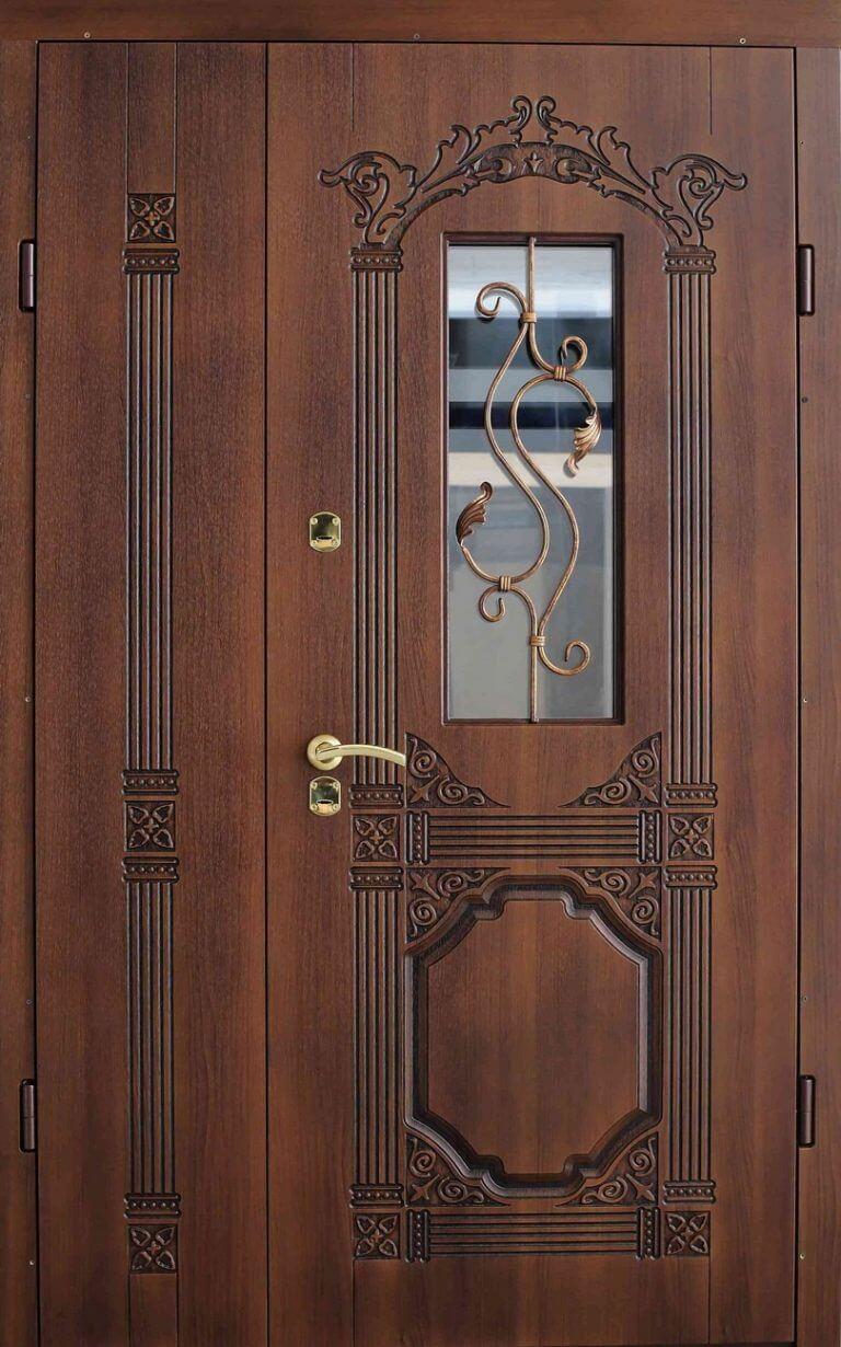 Входная дверь с ковкой и стеклом №12