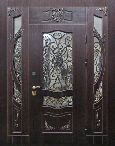 Кованая дверь под старину для частного дома №38 — это идеальное решение для тех, кто ценит уникальный стиль и надёжность. Изготовленная из массива дуба как снаружи, так и внутри, она привнесёт атмосферу уюта и элегантности в ваш дом или коттедж. Эта дверь с элементами ковки, выполненная на основе прочной профильной трубы, представляет собой сочетание классического дизайна и современной функциональности. Она прекрасно подходит для установки в парадной зоне, создавая неповторимый акцент в интерьере. С механической точки зрения дверь оснащена двумя замками Cisa с четырьмя и пятью ригелями, обеспечивающими надёжную защиту. Стойкость к внешним воздействиям и долговечность отделки гарантируют сохранение первоначального вида в течение долгого времени. Кованая дверь под старину для частного дома №38 от производителя: быстрое изготовление и монтаж в Нахабино, индивидуальные размеры, широкий выбор материалов и фурнитуры, официальная гарантия до 10 лет.